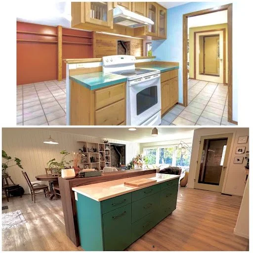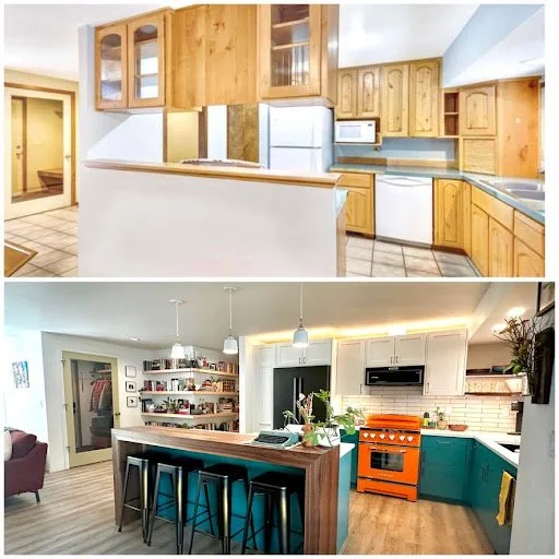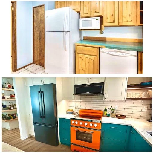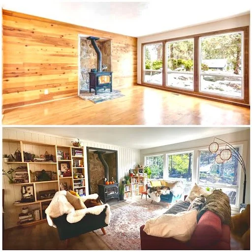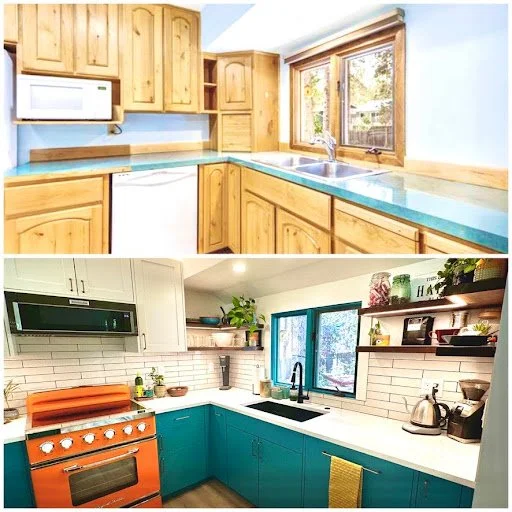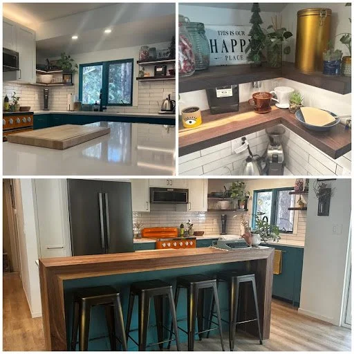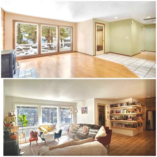 This home in Bend OR needed a refresher in the kitchen, dining, and living areas. The space lacked warmth, character, and storage. We added custom cabinetry, shelving, and unique touches throughout that really made the space feel like home.